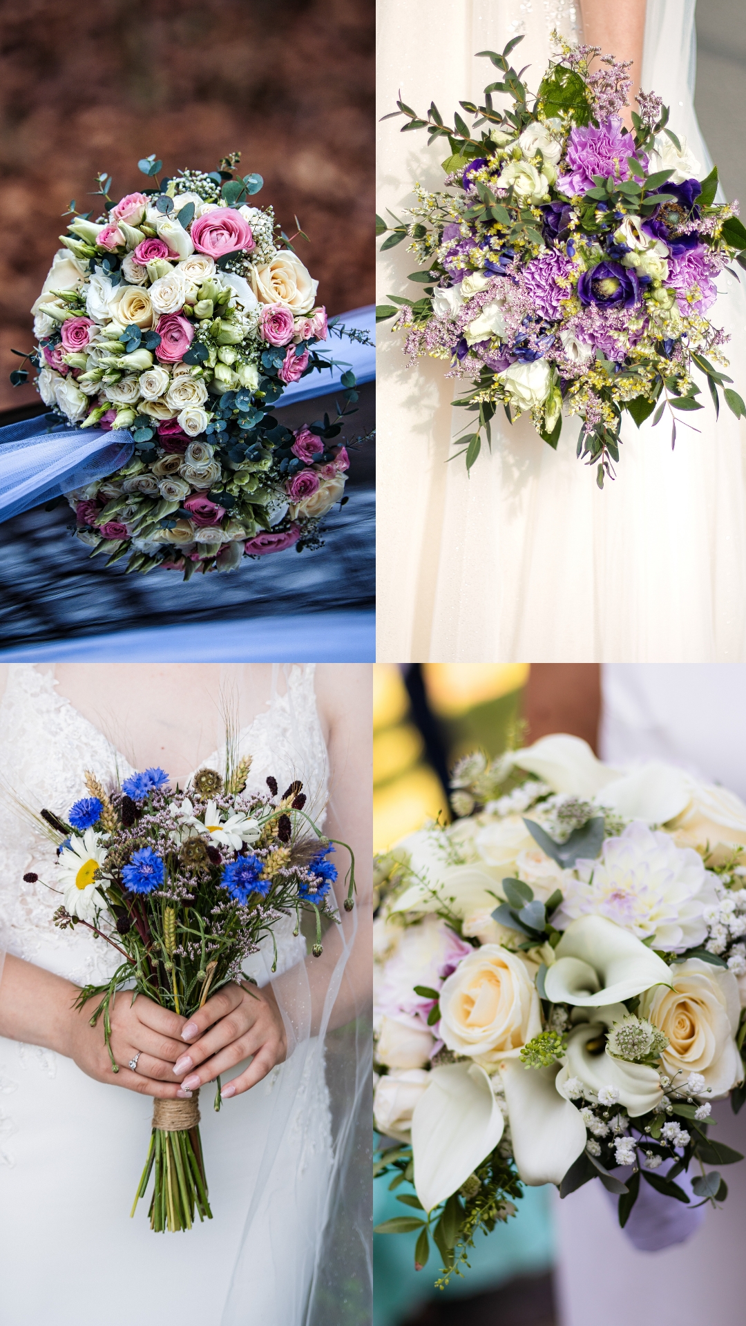 En bohemebuket passer perfekt til et bryllup i naturen, mens en stramt bundet buket med roser eller orkidéer matcher et mere klassisk look.