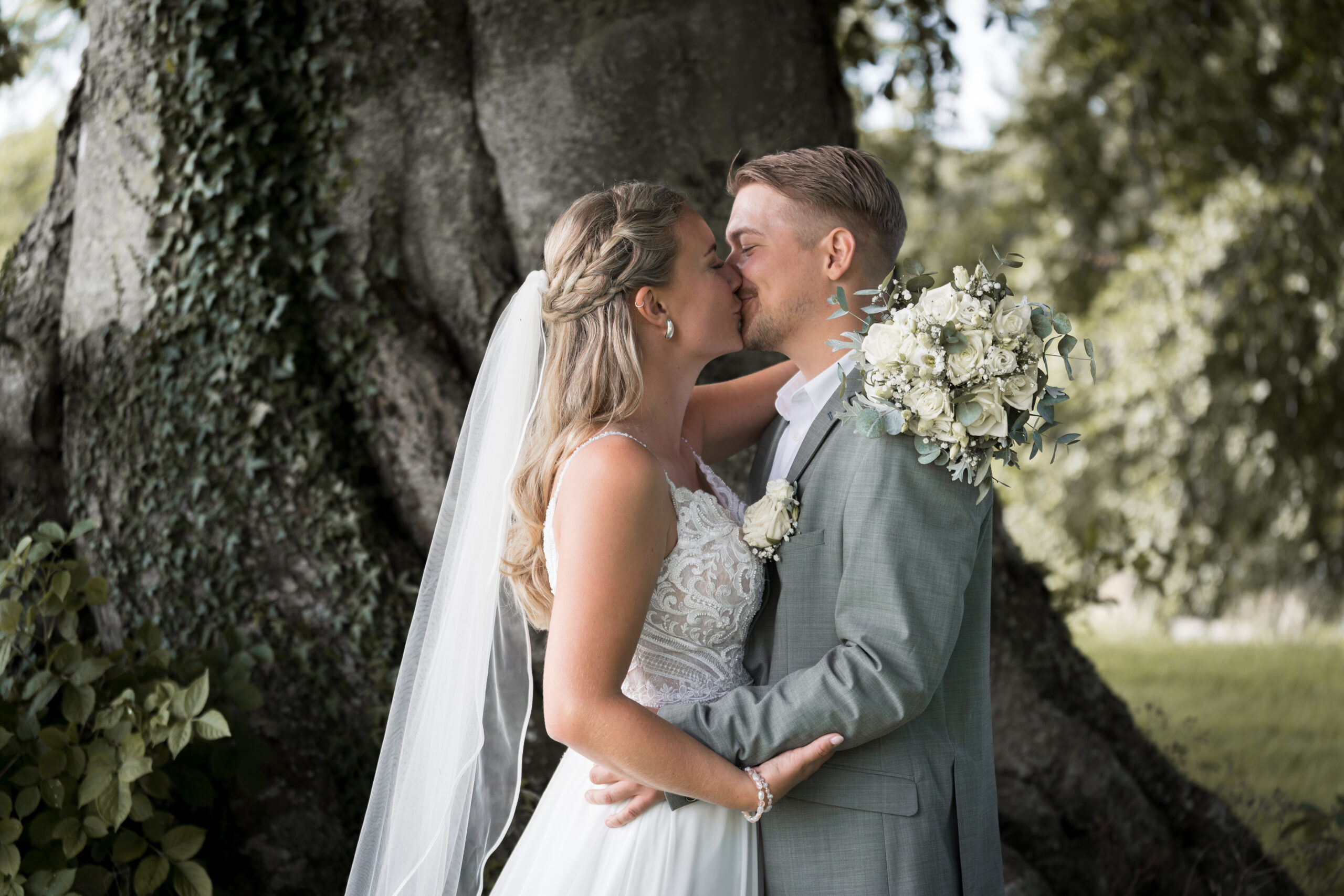 Et kys under de gamle træer, et smil midt i alt det grønne – og et øjeblik, der blev til et minde for livet.