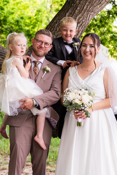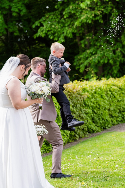 Som fotograf er det en fornøjelse at arbejde på steder som Hvolgård Gods. De smukke omgivelser, slotsstuen og haven gav perfekte rammer for Line og Thomas’ bryllup. Det hele blev en eventyrlig blanding af romantik, elegance og personlige detaljer – præcis det, jeg altid stræber efter at fange i mine billeder.