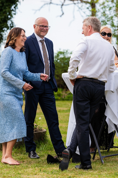 Inde i den smukke slotsstue fortsatte stemningen. En buffet gav gæsterne mulighed for at bevæge sig rundt og snakke på kryds og tværs, og under middagen var der både rørende og morsomme taler. Kameraet blev flittigt brugt – fra tårer i øjenkrogen til store grin ved bordene.